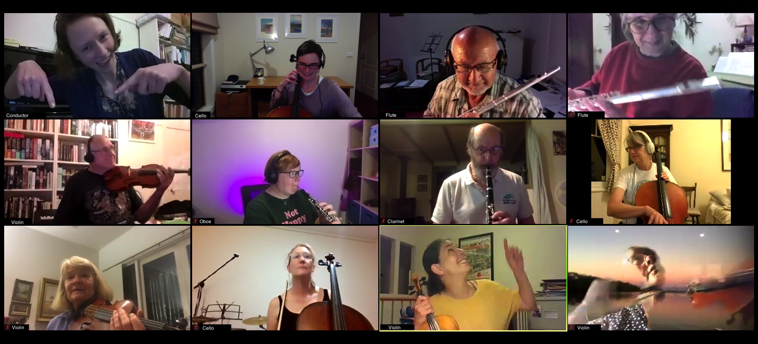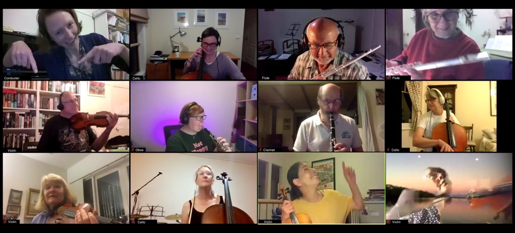 However the continuing constraints including total numbers gathering, density & proximity restrictions and in particular very tight limits on the number of wind & brass players means that we will continue with virtual “zoom” rehearsals for our final rehearsals of 2020. It’s not the same as playing in-person, and we still hit the odd technical hitch (plus the perennial “You’re on mute!”) but it is fun music-making all the same!